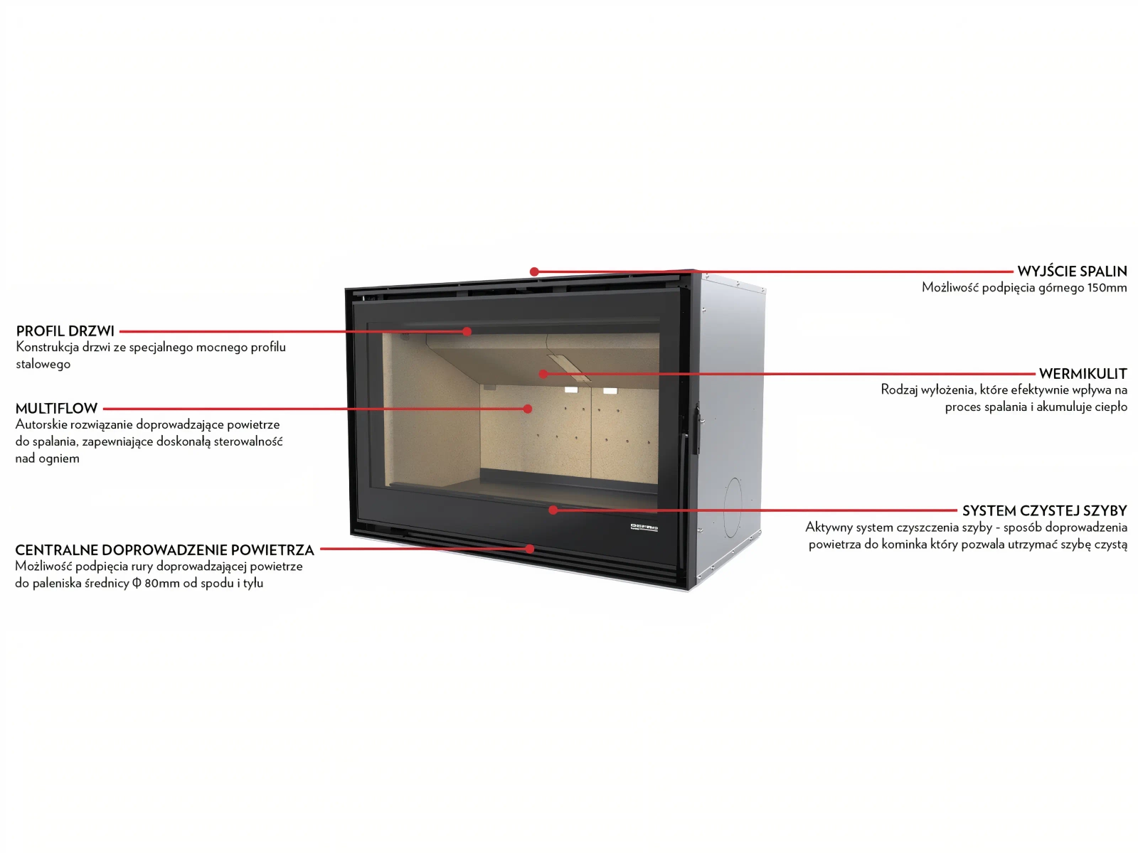 A: Producent przewidział wyjmowany pojemnik na popiół, a także stalowe ruszty, co ułatwia sprzątanie wnętrza paleniska. Dodatkowo system kurtyny powietrznej pomaga ograniczyć nagromadzenie sadzy na szybie.