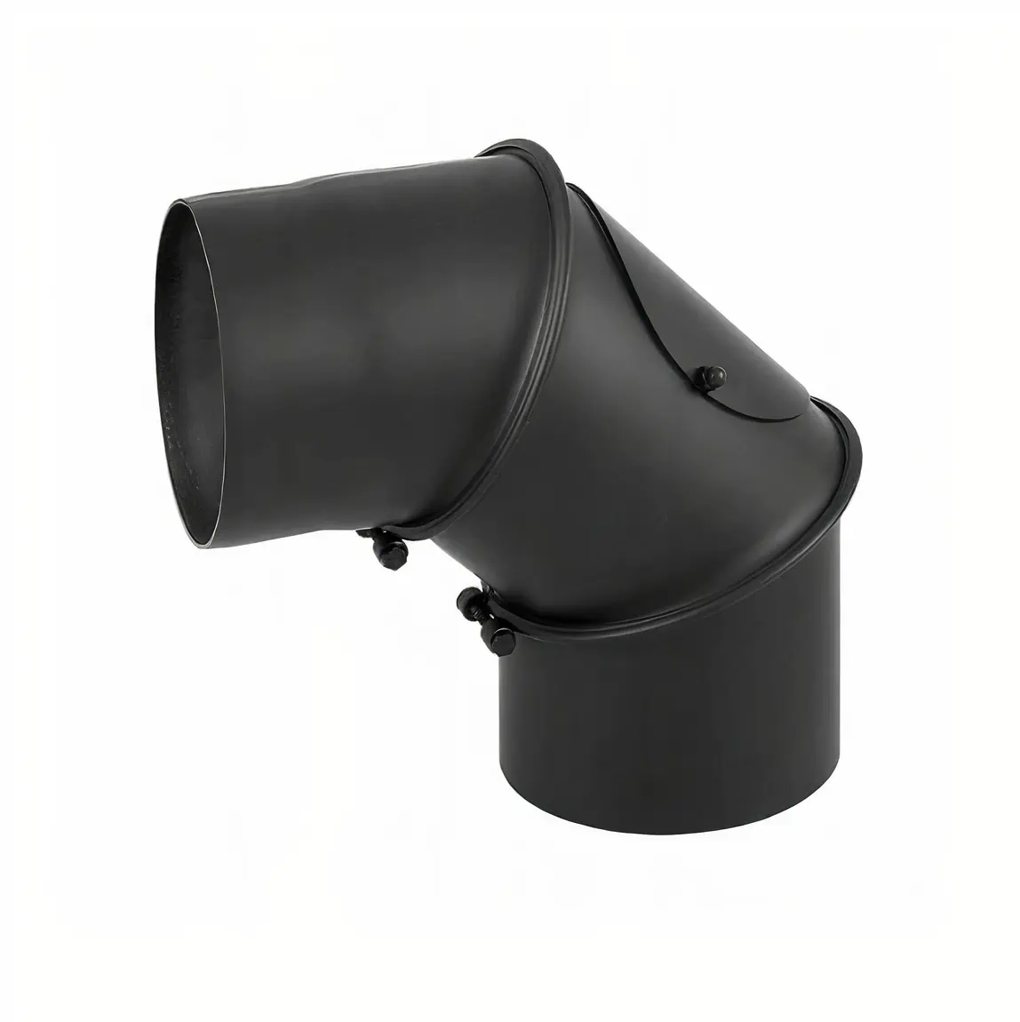 - Kolano spalinowe czarne nastawne o kącie rozwarcia 90 stopni firmy Darco. Kolano jest jednym z elementów systemu SPK - systemu wykonanego ze stali czarnej o grubości 2 mm i przeznaczonego do budowy przyłączy kominowych.