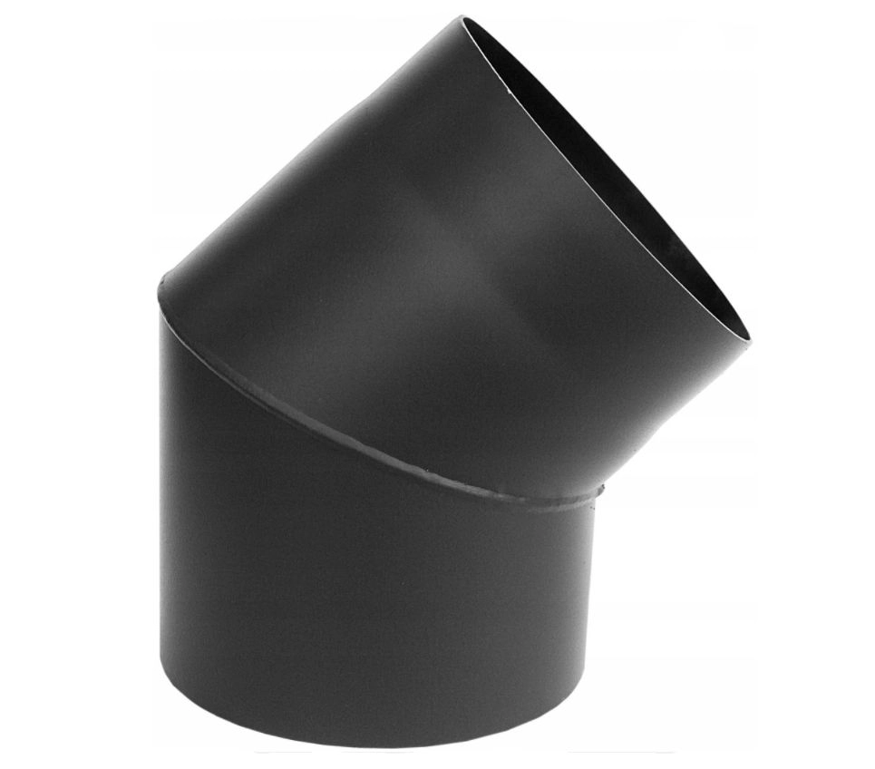 • Kolano spalinowe czarne stałe rozwarte pod kątem 45 stopni firmy Darco. Kolano jest jednym z elementów systemu SPK - systemu wykonanego ze stali czarnej o grubości 2 mm i przeznaczonego do budowy przyłączy kominowych.