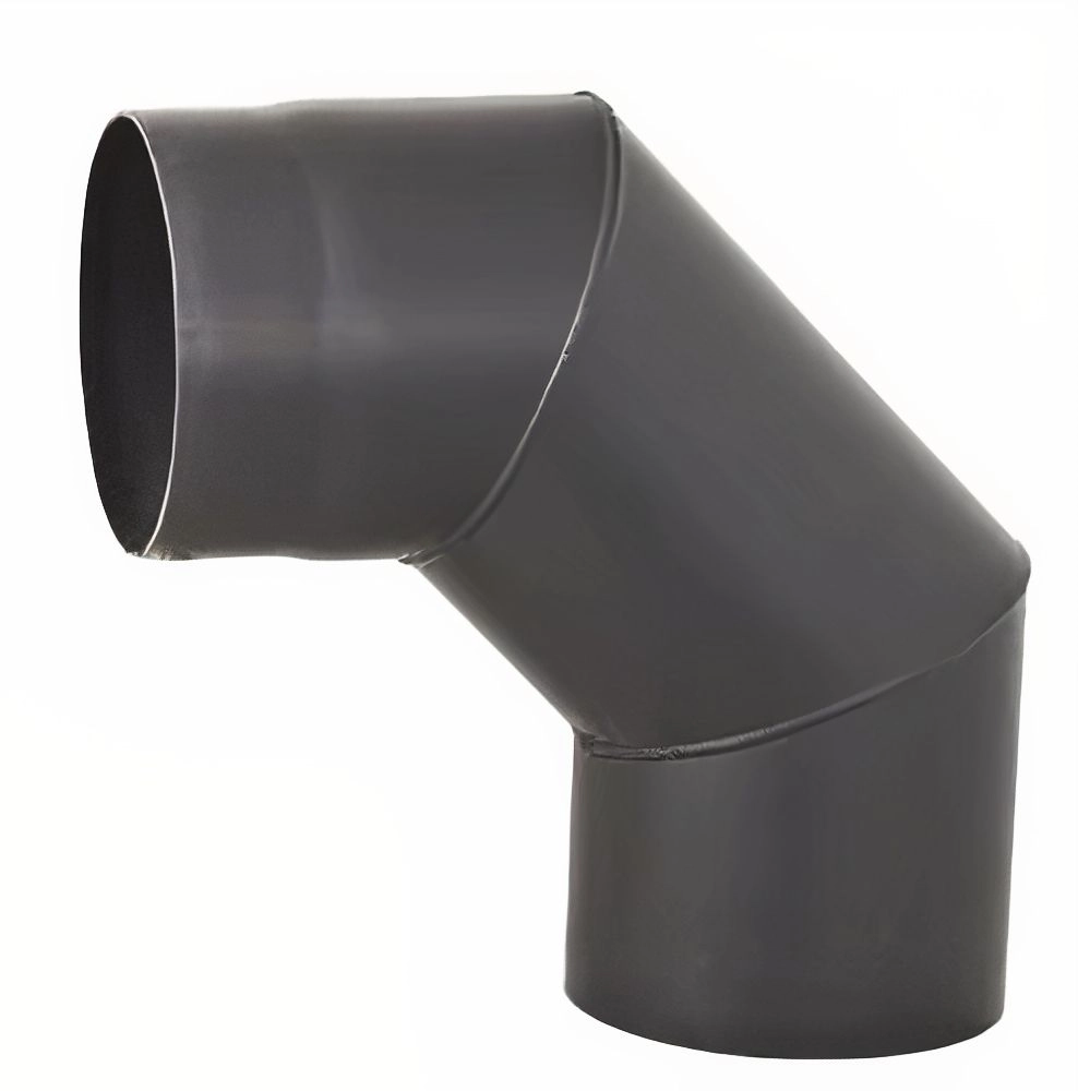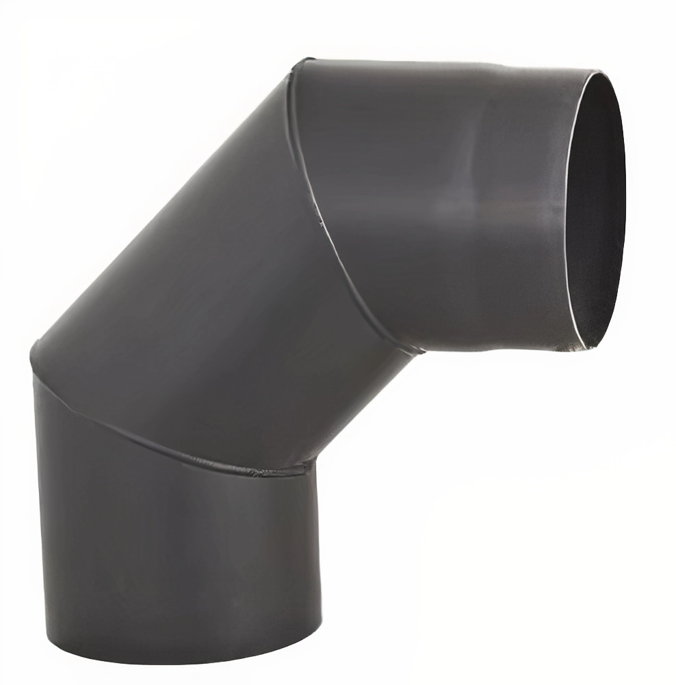 Kolano spalinowe czarne stałe o średnicy 200 mm rozwarte pod kątem 90 stopni jest jednym z wielu elementów systemu przyłączy czarnych SPK.