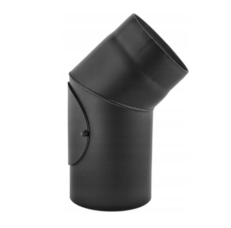 • Kolano spalinowe czarne stałe z rewizją rozwarte pod katem 45 stopni firmy Darco. Kolano jest jednym z elementów systemu SPK - systemu wykonanego ze stali czarnej o grubości 2 mm i przeznaczonego do budowy przyłączy kominowych.