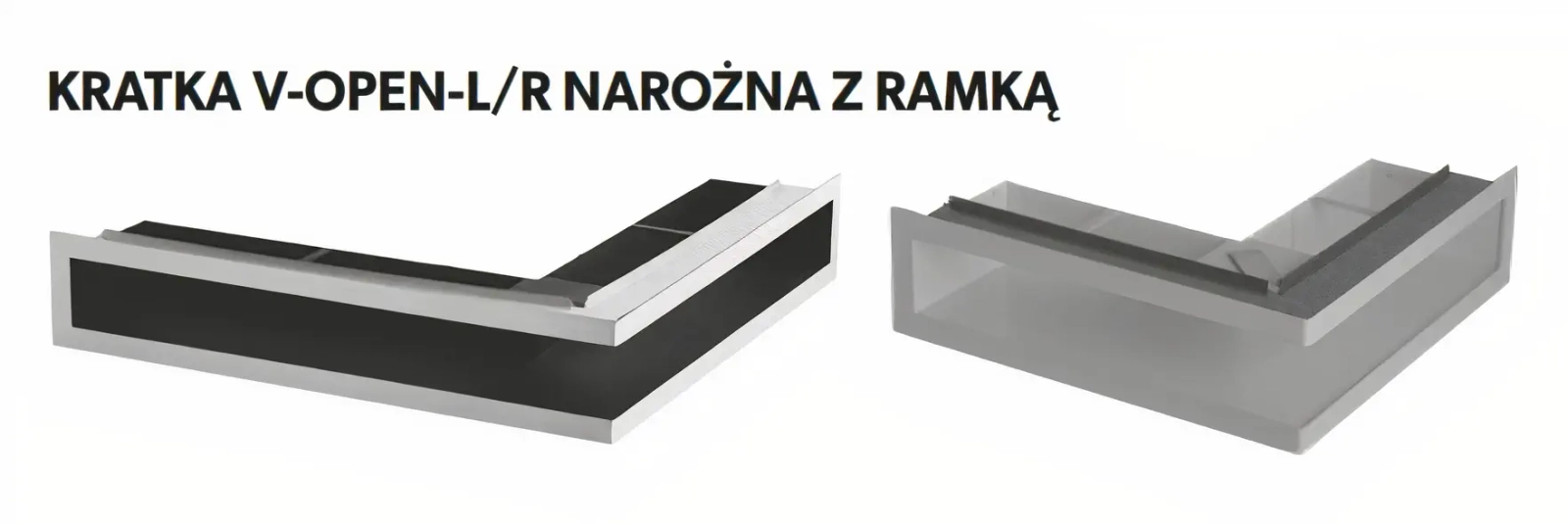 Kratki wentylacyjne Ventlab serii V-Open cechuje wysoka precyzja i jakość wykonania. Dostępne są modele w wersji prostej (tzw. kratki tunelowe) i narożnej, z ramką montażową lub bez. Sposób wykonania i konstrukcja gwarantują minimalne straty ciśnienia i łatwość utrzymania w czystości. Kratki V-Open dostępne są w kolorze czarnym, grafitowym lub białym.