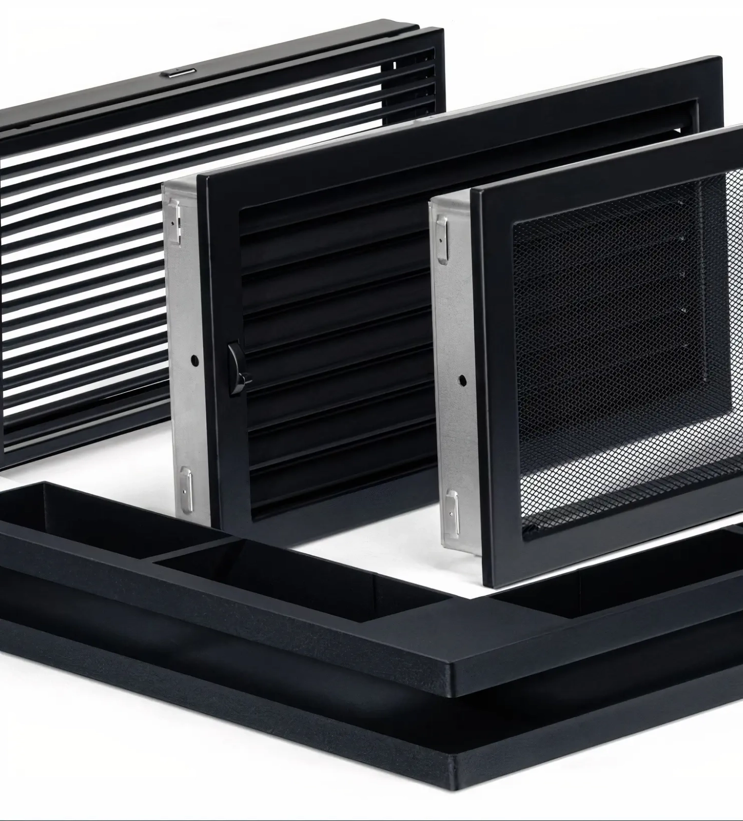 Kratki wentylacyjne Ventlab serii V-Open cechuje wysoka precyzja i jakość wykonania. Dostępne są modele w wersji prostej (tzw. kratki tunelowe) i narożnej, z ramką montażową lub bez. Sposób wykonania i konstrukcja gwarantują minimalne straty ciśnienia i łatwość utrzymania w czystości. Kratki V-Open dostępne są w kolorze czarnym, grafitowym lub białym.