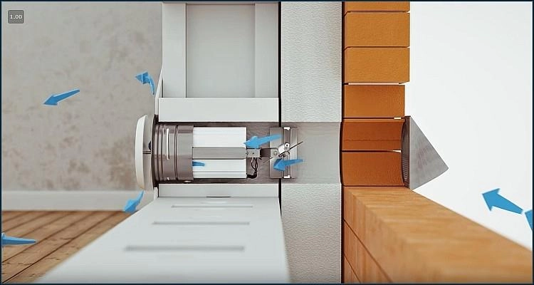 Montowany jest w ścianie zewnętrznej. Zbudowany jest z czerpni, kanału i anemostatu.