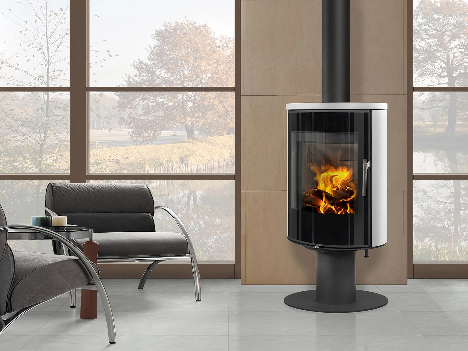- LAREDO T to piękny i elegancki piec obrotowy, który umożliwia widok żywego ognia z wszystkich zakątków Twojego mieszkania.