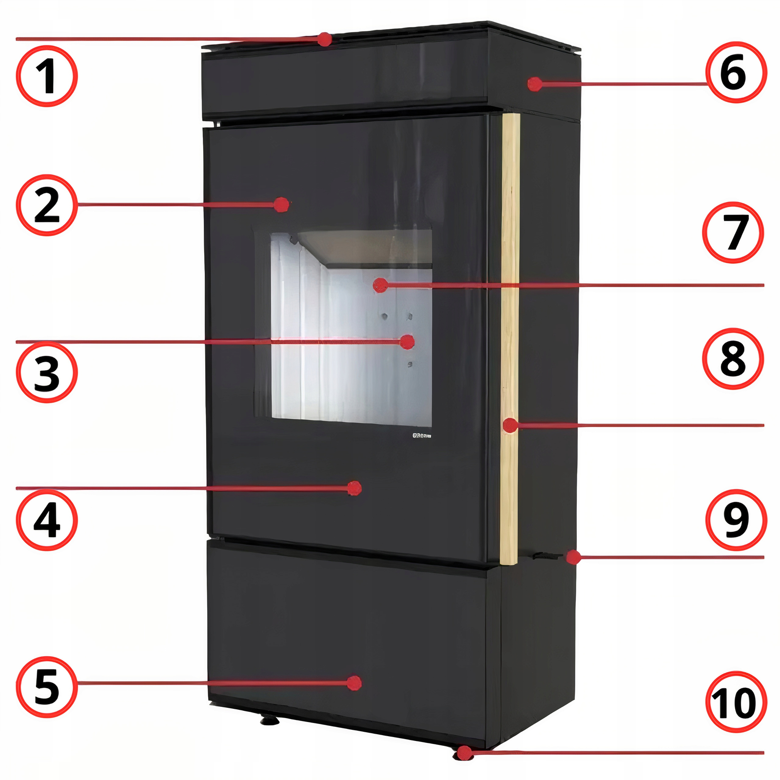 ✔️ Przy mocy nominalnej 6 kW piecyk może efektywnie ogrzać powierzchnię około 60 m², w zależności od izolacyjności budynku. Szeroki zakres regulacji mocy (2,6-7,9 kW) pozwala na dostosowanie do różnych potrzeb cieplnych.