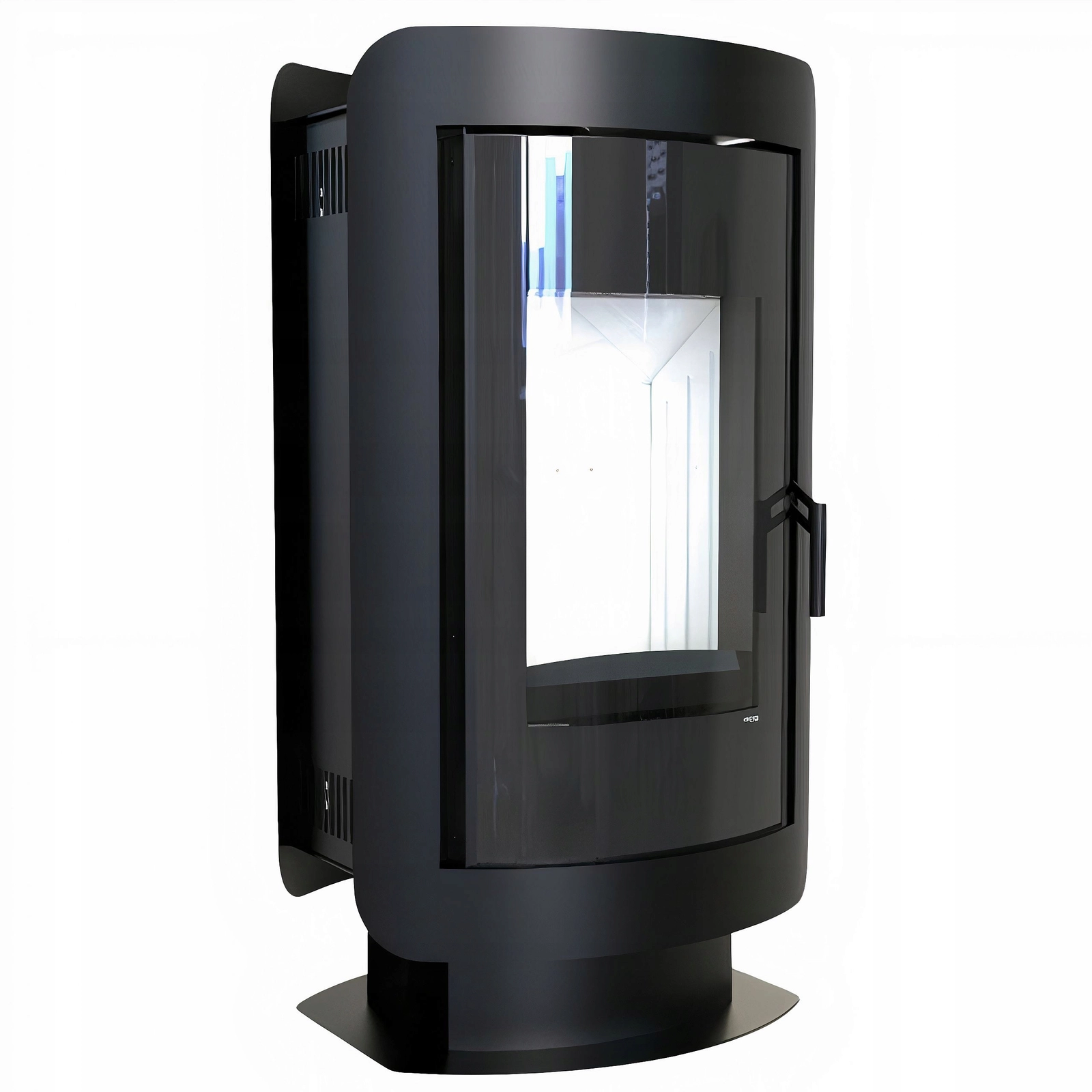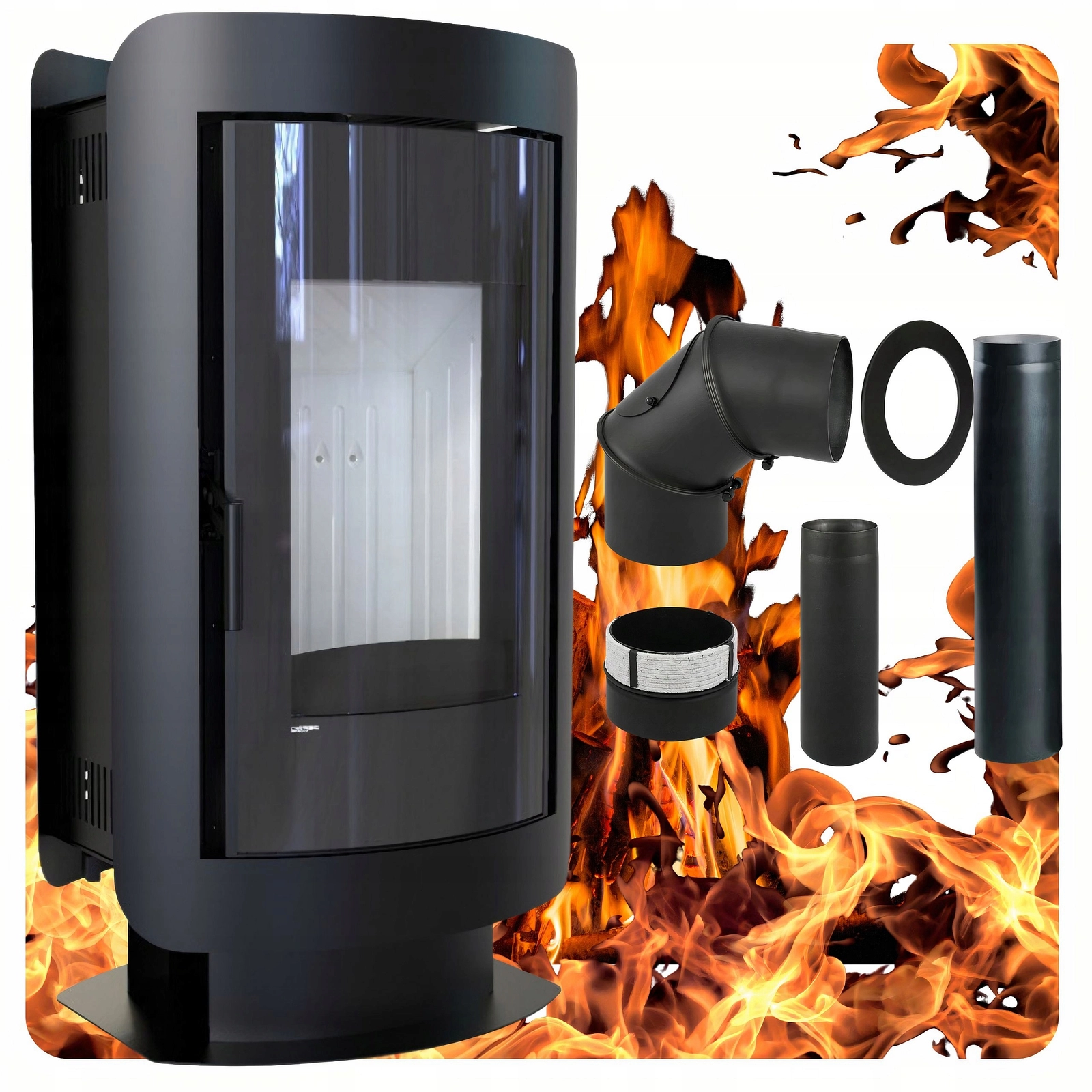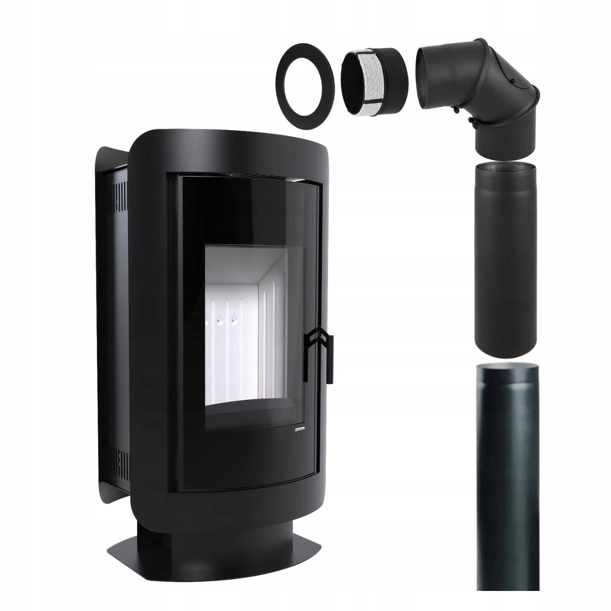 ✅ Smukły, owalny kształt i czarne matowe wykończenie sprawiają, że piec prezentuje się wyjątkowo zarówno w aranżacjach klasycznych, jak i nowoczesnych.