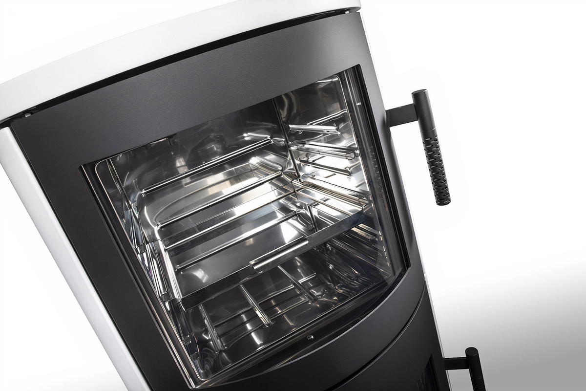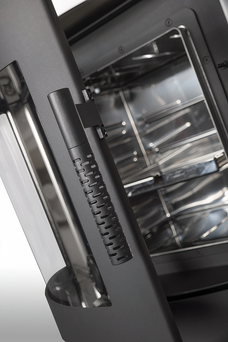 Drzwiczki posiadają blokadę w położeniu otwartym, a wentylowana klamka umożliwia używanie podczas palenia.