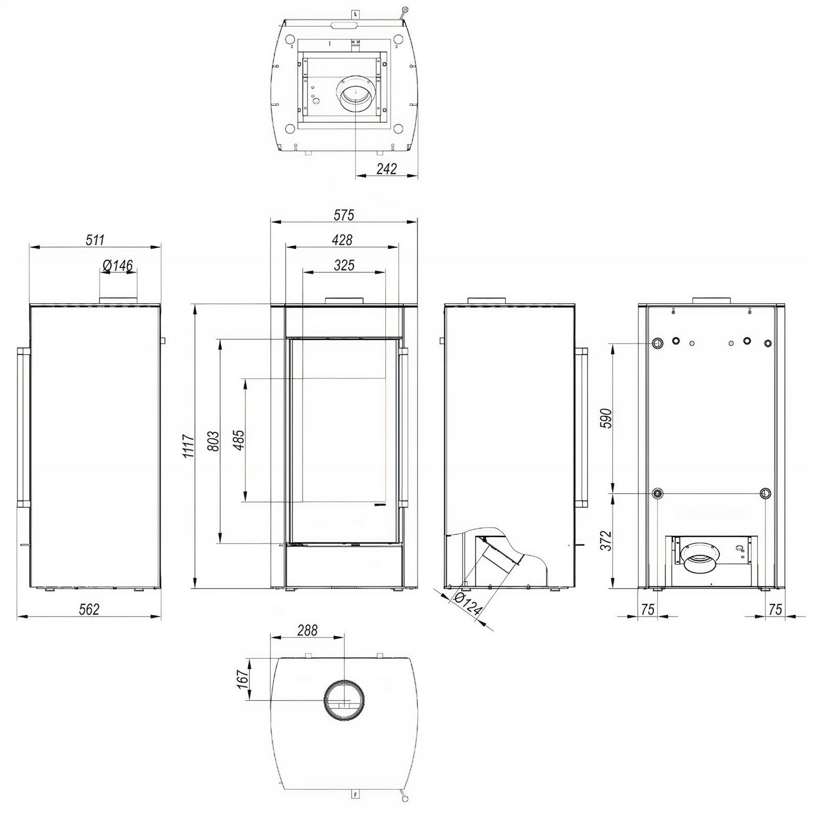 - Wyjście spalin - możliwość podpięcia górnego fi 146 mm