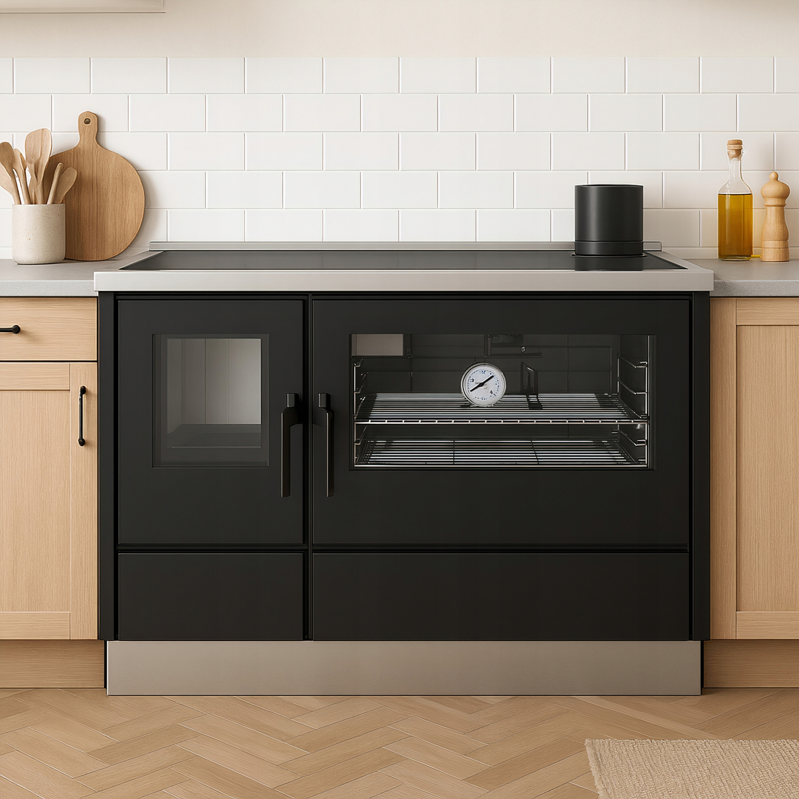 Nowoczesny design pieca CULINA S doskonale łączy stalową konstrukcję z eleganckim przeszkleniem, sprawiając, że urządzenie sprawdza się zarówno w kuchniach tradycyjnych, jak i nowoczesnych. Dzięki doprowadzeniu powietrza z zewnątrz piec nadaje się również do budynków energooszczędnych. Spełnia wymagania Ekoprojektu 2022 i europejskich norm emisyjnych, co gwarantuje ekologiczne spalanie drewna.
