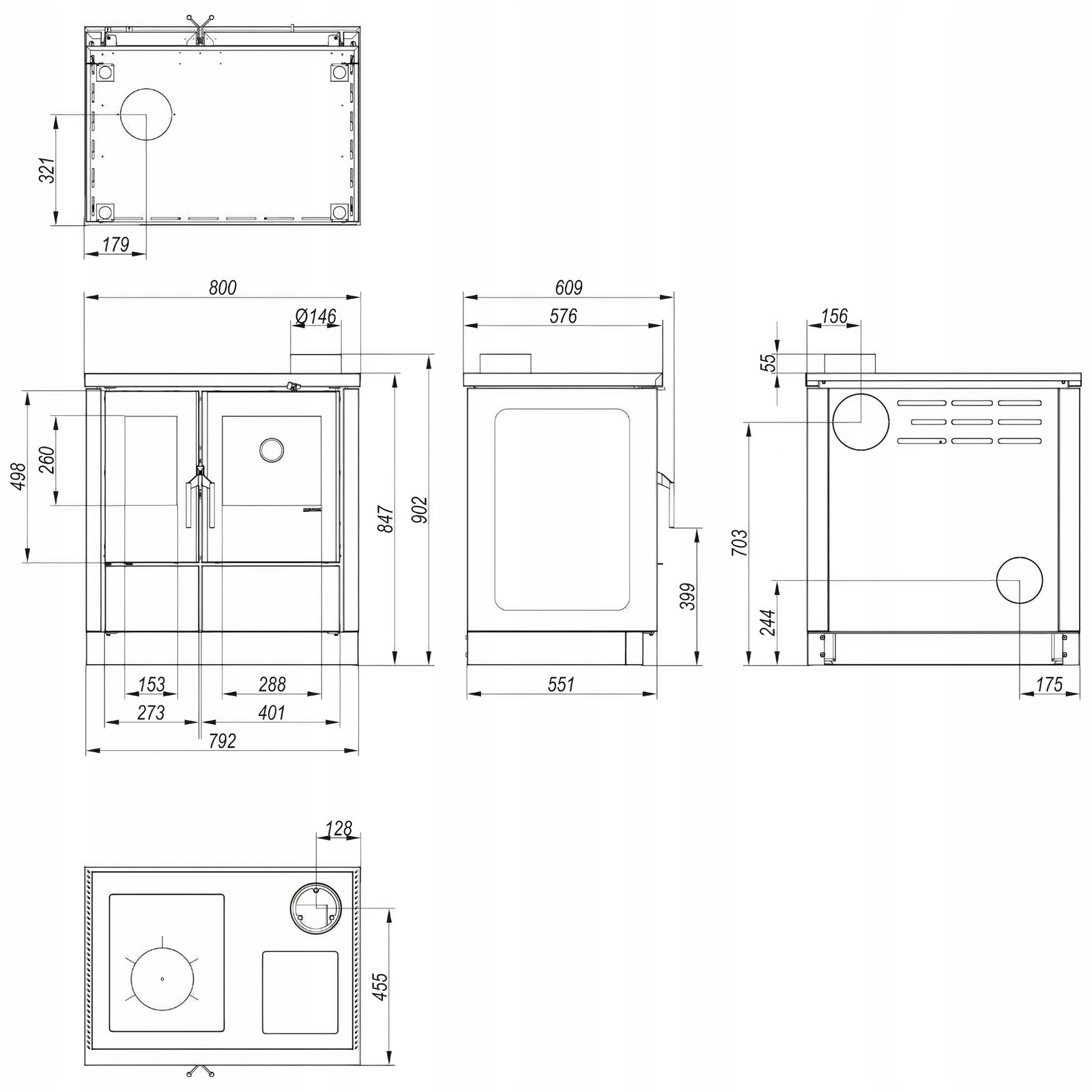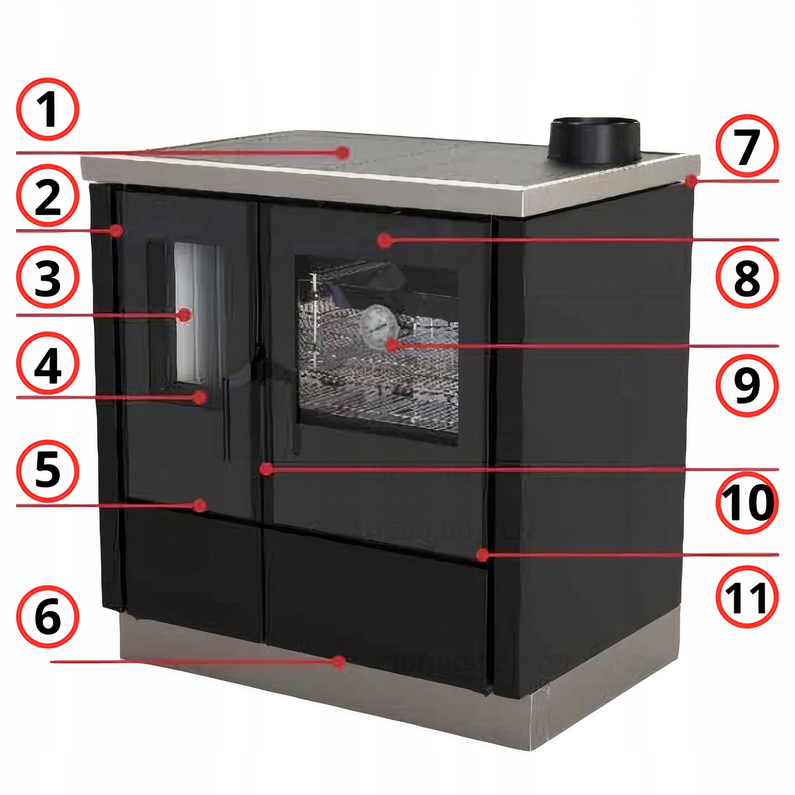 ✔️ Przy mocy 9,7 kW kuchnia może efektywnie ogrzać powierzchnię około 100 m². Piekarnik ze stali nierdzewnej z termometrem i dużą szybą pozwala na kontrolowane pieczenie chleba, pizzy i innych potraw bez użycia prądu.