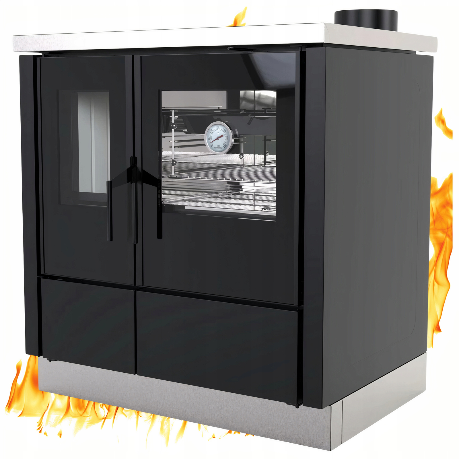 ✔️ PEŁNOWARTOŚCIOWA KUCHNIA Z PIEKARNIKIEM - płyta grzewcza nad paleniskiem oraz przestronny piekarnik ze stali nierdzewnej pozwalają na gotowanie, smażenie i pieczenie bez użycia prądu. Termometr i duża szyba umożliwiają kontrolę procesu pieczenia.