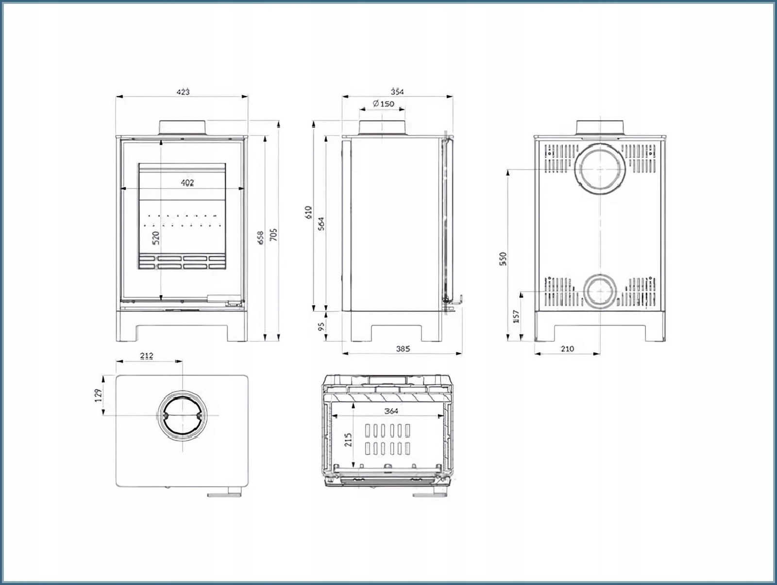 - Wylot fi 150 mm (góra/tył) → elastyczny montaż
