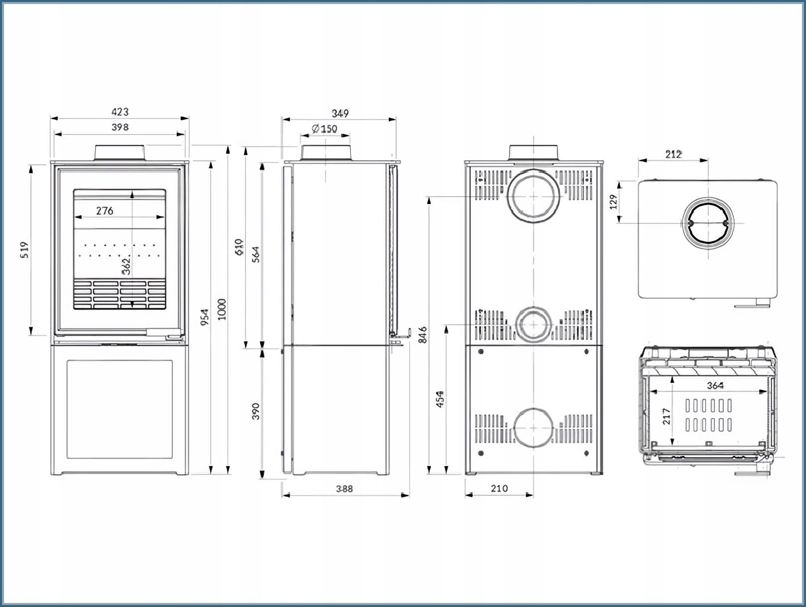 - Dopalanie spalin - specjalne otwory w tylnej ścianie umożliwiają regulację dopływu powietrza, co maksymalizuje wydajność spalania