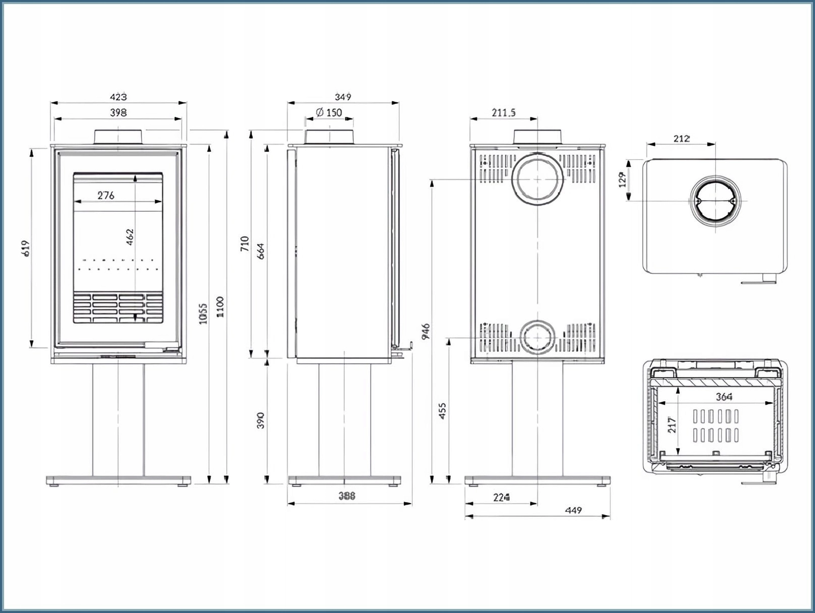 - Szybkie nagrzewanie dzięki stalowemu korpusowi — szybki efekt ciepła i mniej zużytego drewna