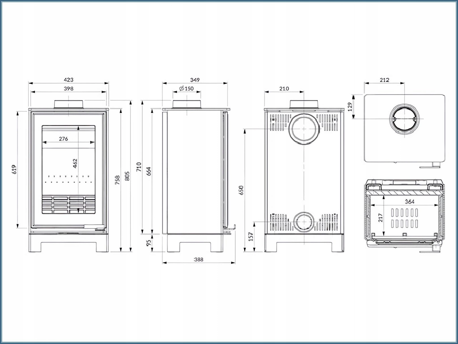 • Szybkie nagrzewanie dzięki stalowemu korpusowi — szybki efekt ciepła i mniej zużytego drewna