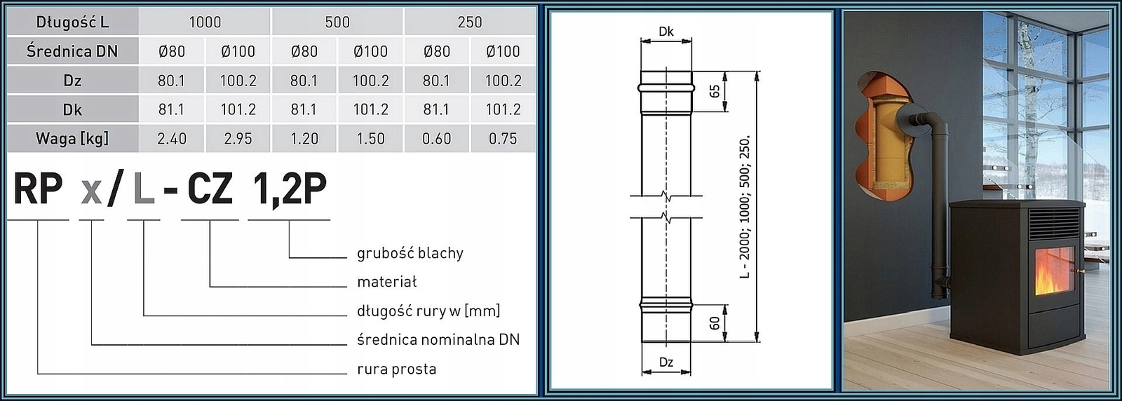 Zalecany do odprowadzania spalin z kominków lub urządzeń grzewczych na pellet.