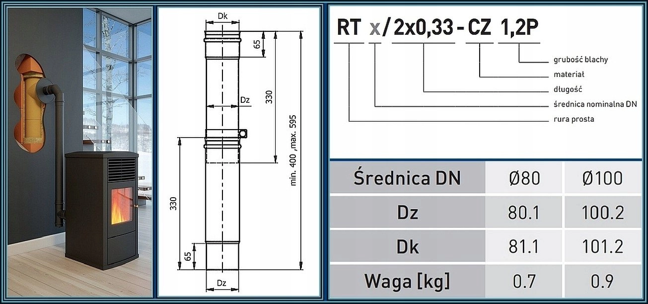 Zalecany do odprowadzania spalin z kominków lub urządzeń grzewczych na pellet.