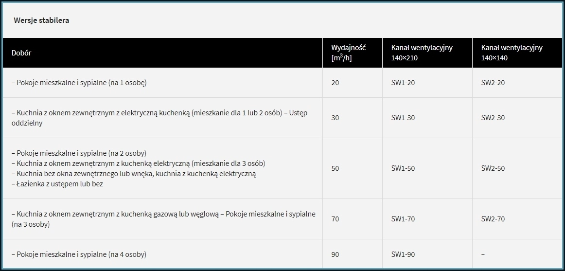 Stabiler nie posiada osłony, więc Klient sam decyduje jaką kratką wentylacyjną go zasłoni. Występuje w dwóch rozmiarach pasujących do typowych otworów wentylacji grawitacyjnej, dlatego doskonale sprawdza się przy wszelkich modernizacjach