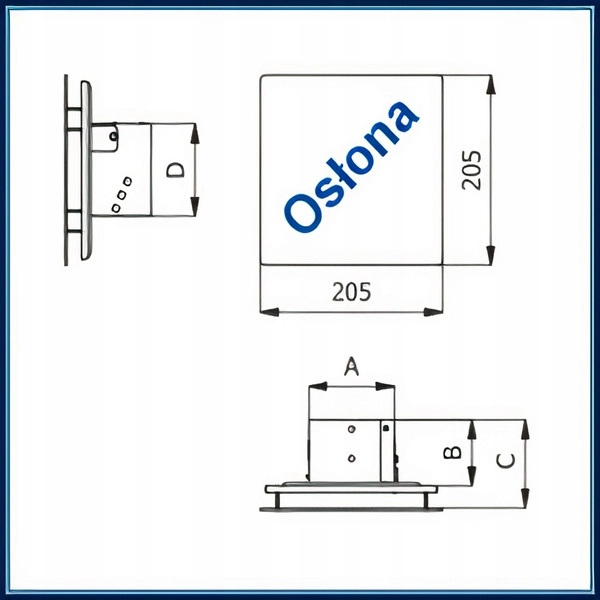 - Wymiary otworu murowego - 140 mm x 140 mm