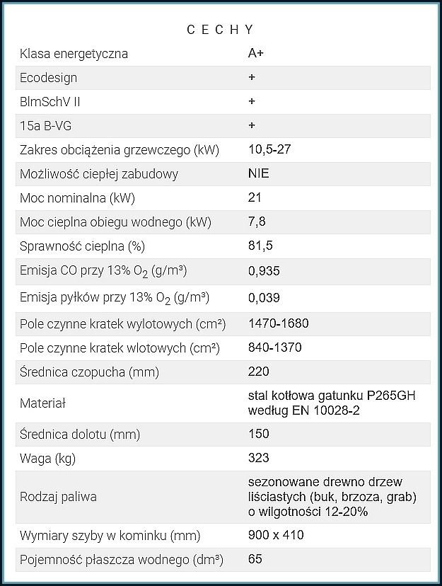 Jest to zasługa płaszcza wodnego, który podczas palenia drewna odbiera ciepło i przekazuje je do instalacji grzewczej.