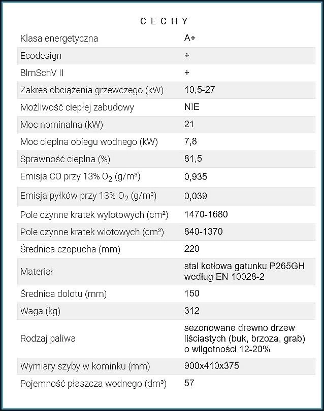 Jest to zasługa płaszcza wodnego, który podczas palenia drewna odbiera ciepło i przekazuje je do instalacji grzewczej.