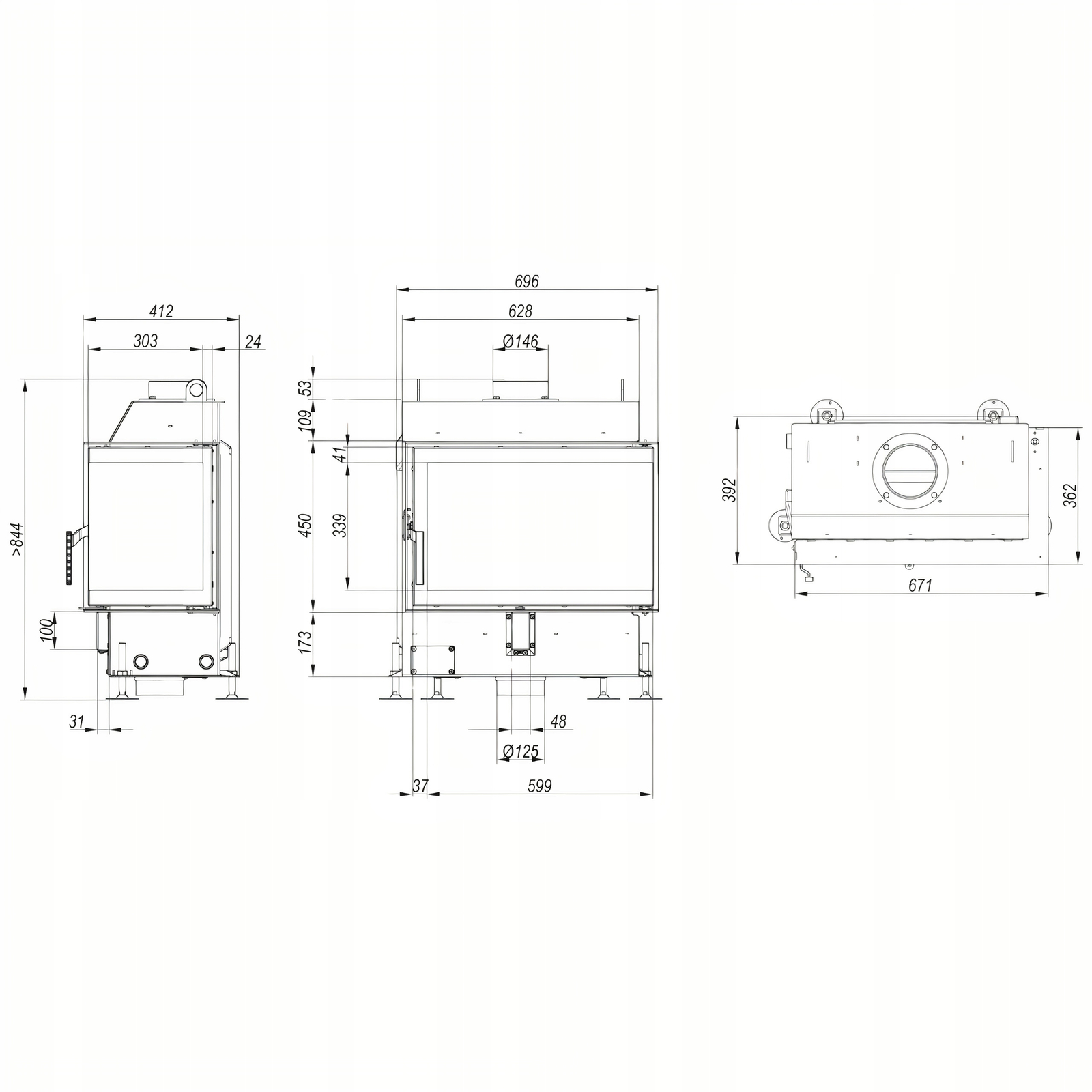 Wkład kominkowy lewy 7 kW Eko Defro Impuls SM BL Basic Zestaw montażowy