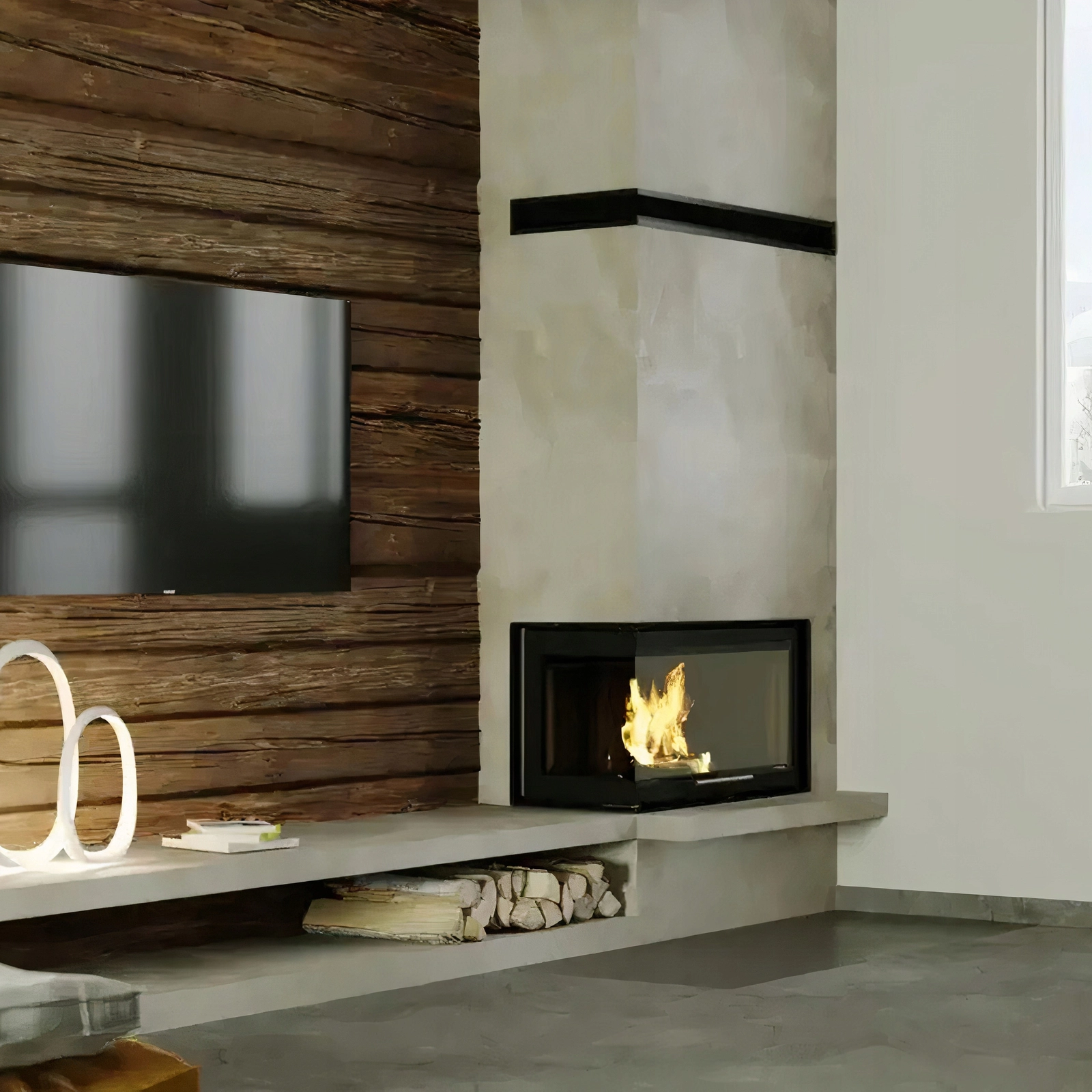 ✔️ przeszklenie narożne – piękna ekspozycja płomieni z dwóch stron,
