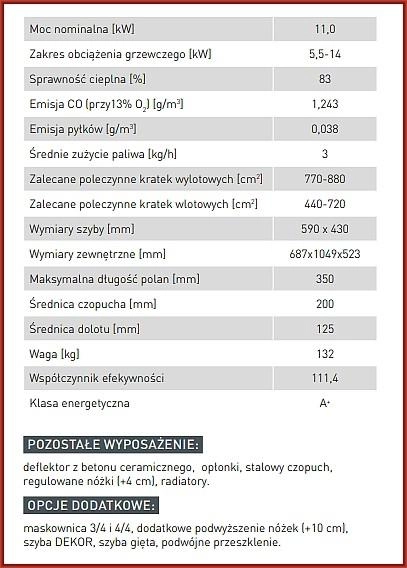 * Spełnia normy BlmSchV II i ECODESIGN.