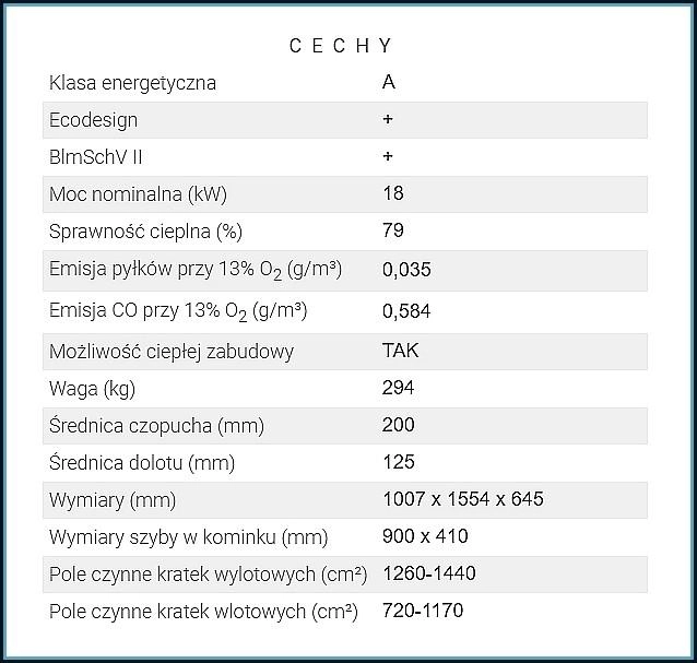 • Spełnia normy BImSchV II i ECODESIGN. (15a B-VG nie spełnia, wymagana sprawność powyżej 80%).