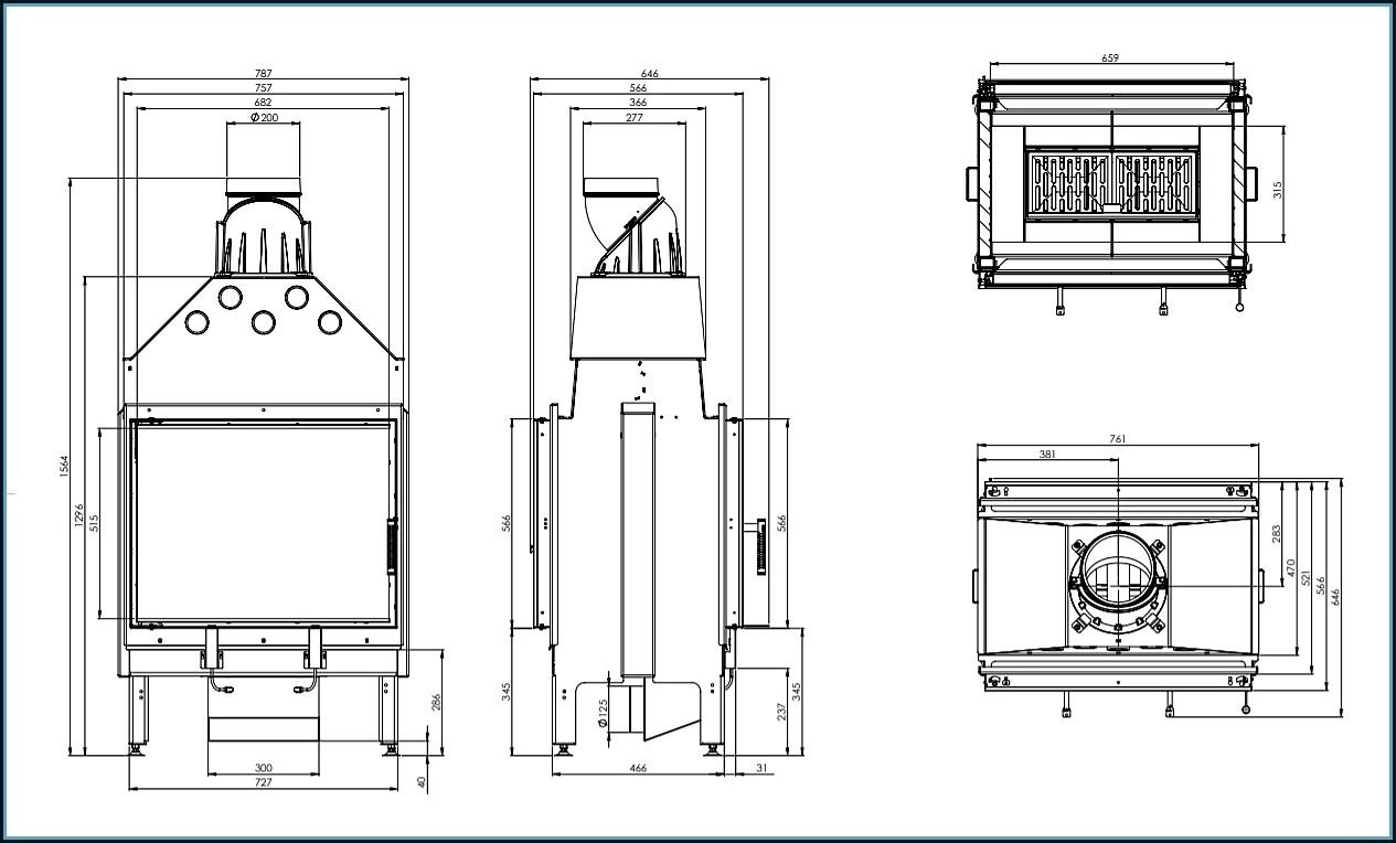 • Wkład z powiększoną, głęboką prostokątna komorą spalania dająca możliwość dużych załadunków.