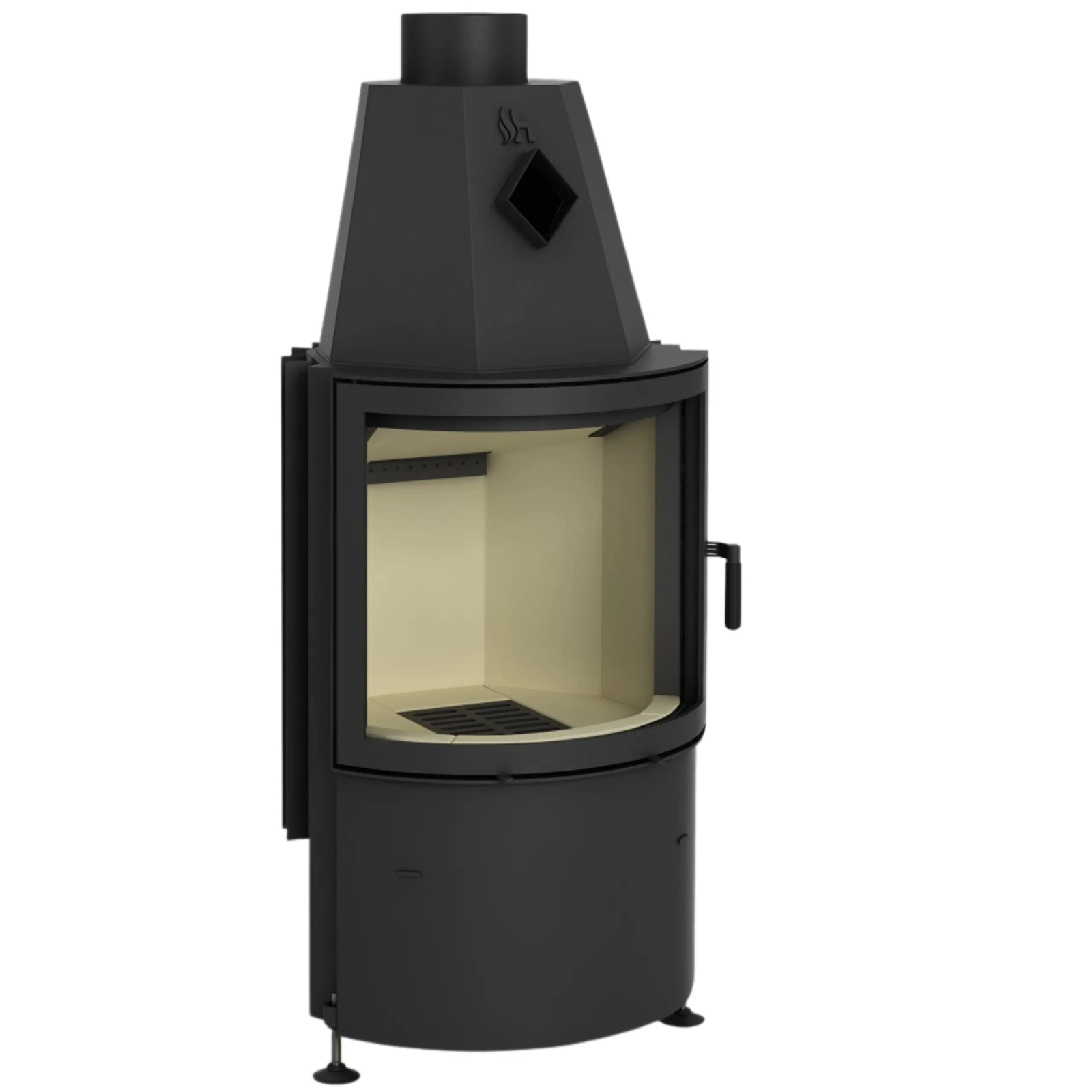 - Komora spalania wyłożona kształtkami ceramicznymi zapewnia stabilność temperatury w pomieszczeniu i wysoki komfort cieplny.