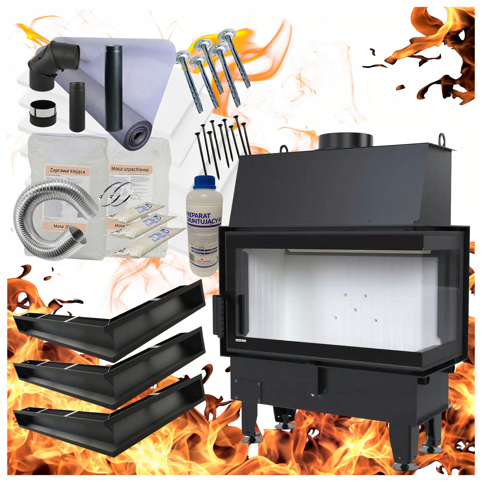 Wkład kominkowy prawy 10 kW Eko Defro Home Impuls ME BP Zestaw montażowy
