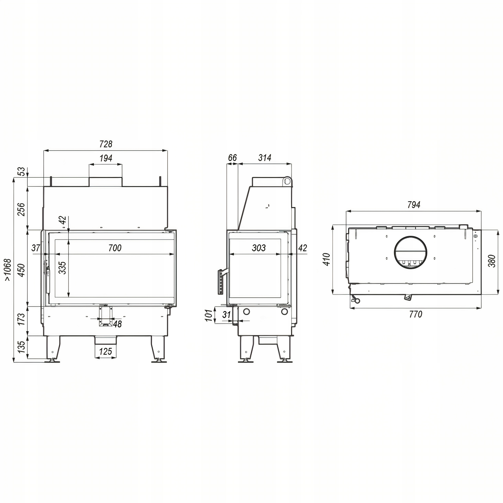 ✔️ Wbudowany króciec dolotu powietrza z zewnętrznej przestrzeni poprawia cyrkulację i wspiera efektywną pracę kominka bez zakłócania naturalnej wentylacji pomieszczenia.