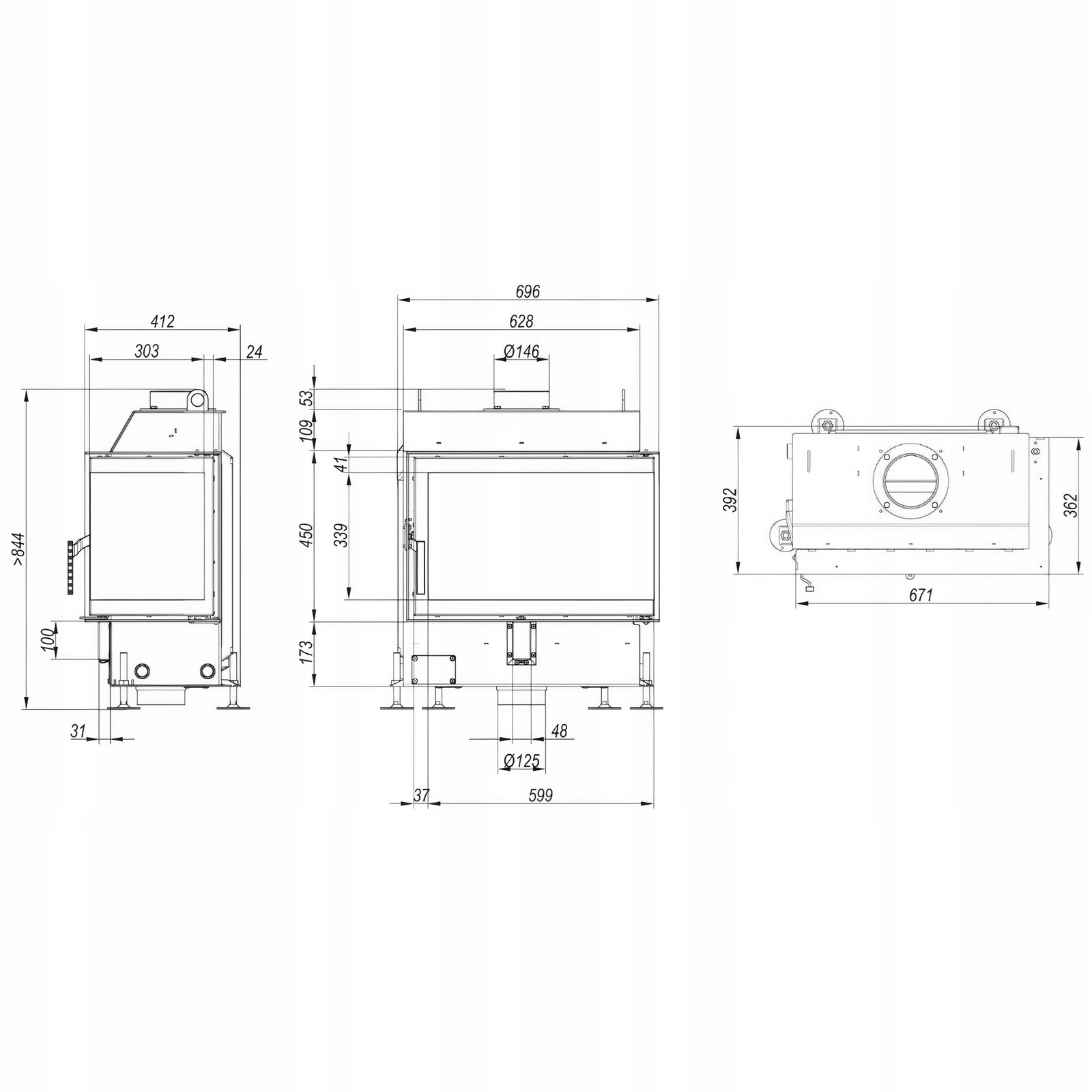 Wkład kominkowy prawy 7 kW Eko Defro Impuls SM BP Basic Zestaw montażowy