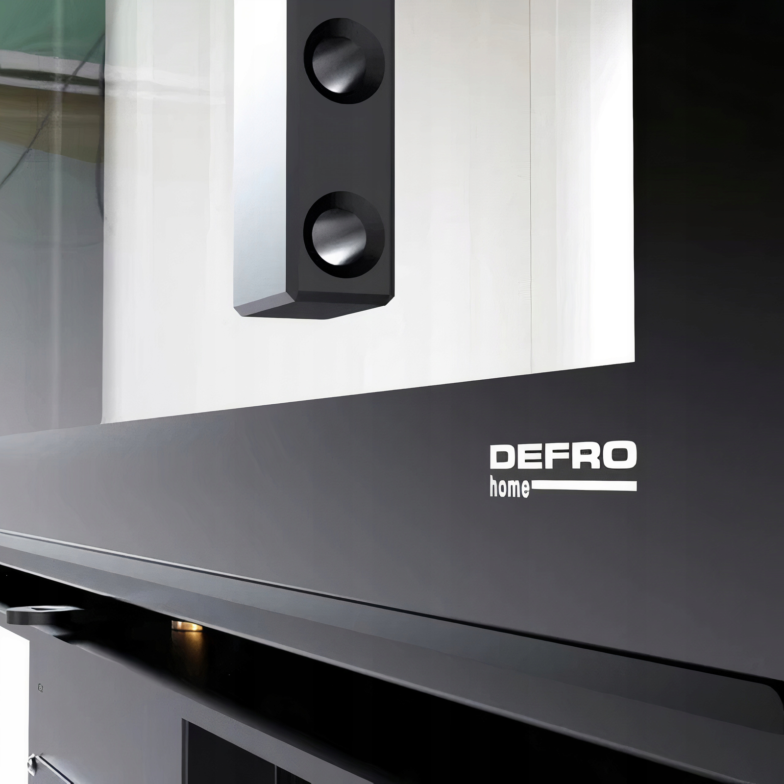 ✅ Estetyczny design klamki harmonizuje z całą konstrukcją kominka stalowego i żeliwnego, wpisując się w nowoczesne wkłady kominkowe powietrzne Defro Home.