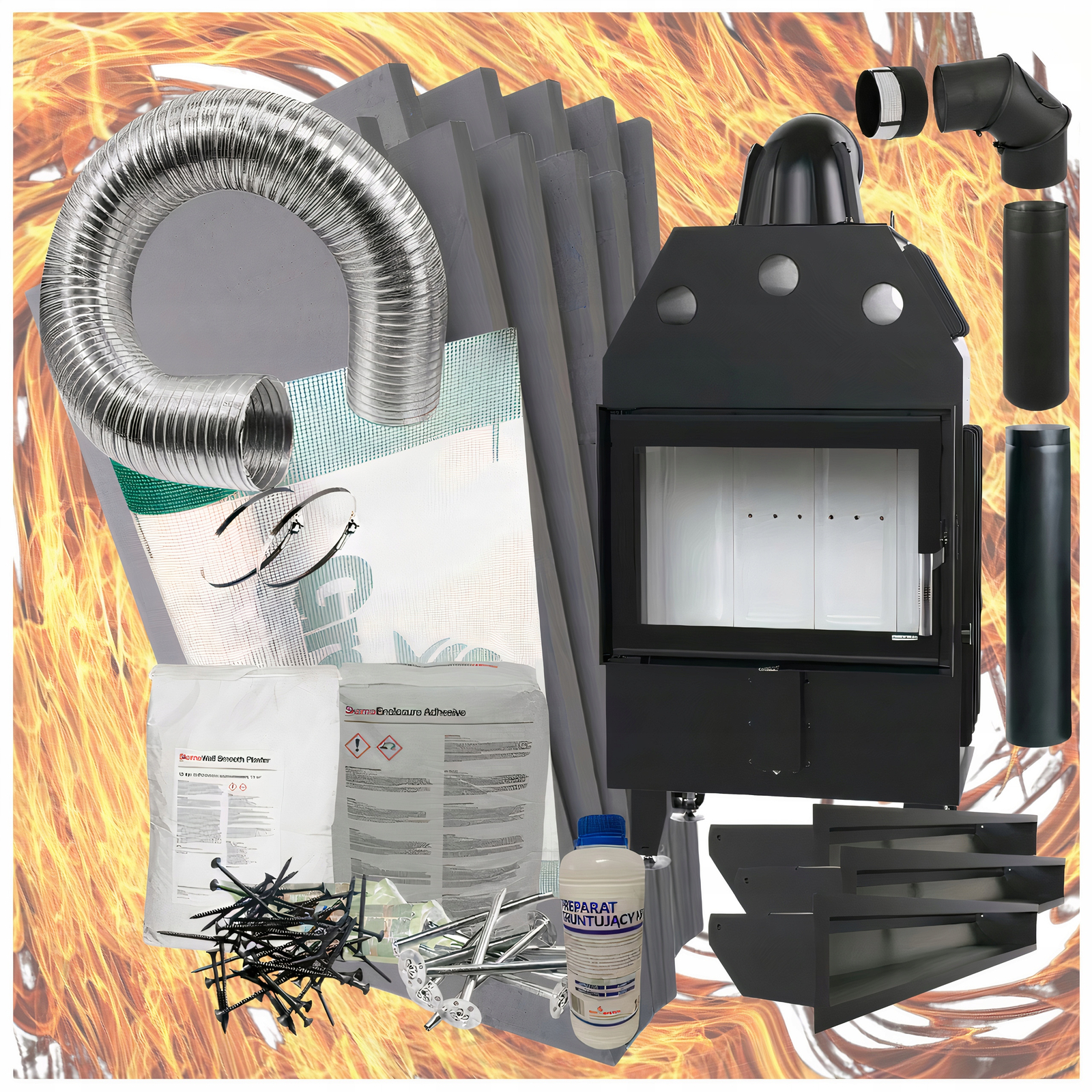 ✔️ Zestaw montażowy z płytami Skamol i podłączeniem do przewodu kominowego firmy Darco ułatwia szybki i estetyczny montaż, skracając czas prac instalacyjnych i minimalizując potrzebę dodatkowych przeróbek,