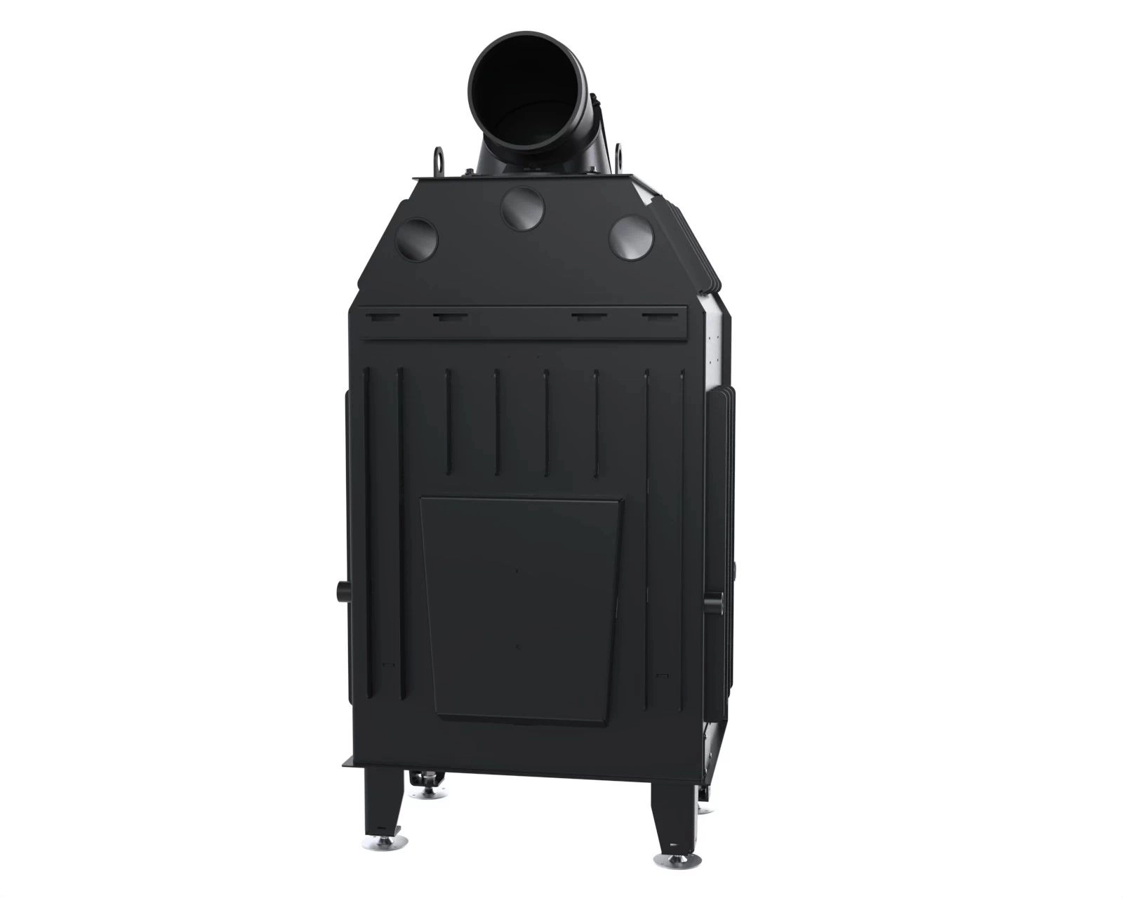 Dodatkowe zalety, jak dolot powietrza z zewnątrz, regulacja intensywności spalania i system dopalania spalin, przekładają się na czyste i pełne spalanie drewna. Kurtyna powietrzna kierowana na szybę zapobiega jej zabrudzeniu, co zmniejsza potrzebę czyszczenia i pozwala cieszyć się widokiem ognia bez przeszkód. Ten wkład kominkowy efektywnie ogrzeje powierzchnię od 50 do 80 m2.