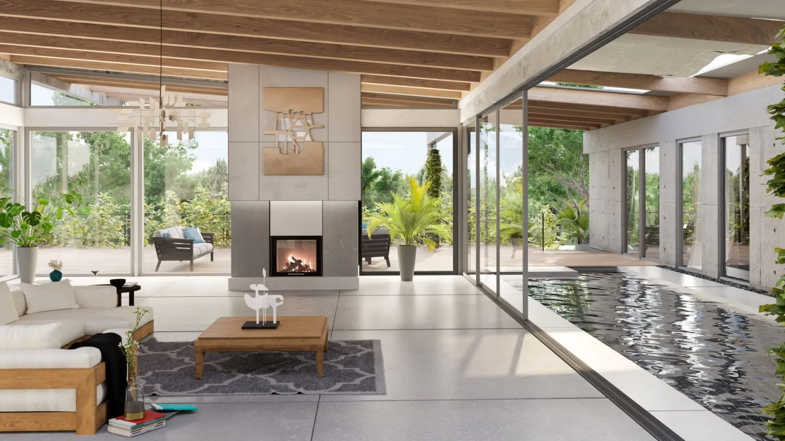 - Salonów wymagających efektownego przeszklenia z mechanizmem drzwi podnoszonych do góry, co pozwala na oszczędność miejsca przy otwieraniu paleniska.