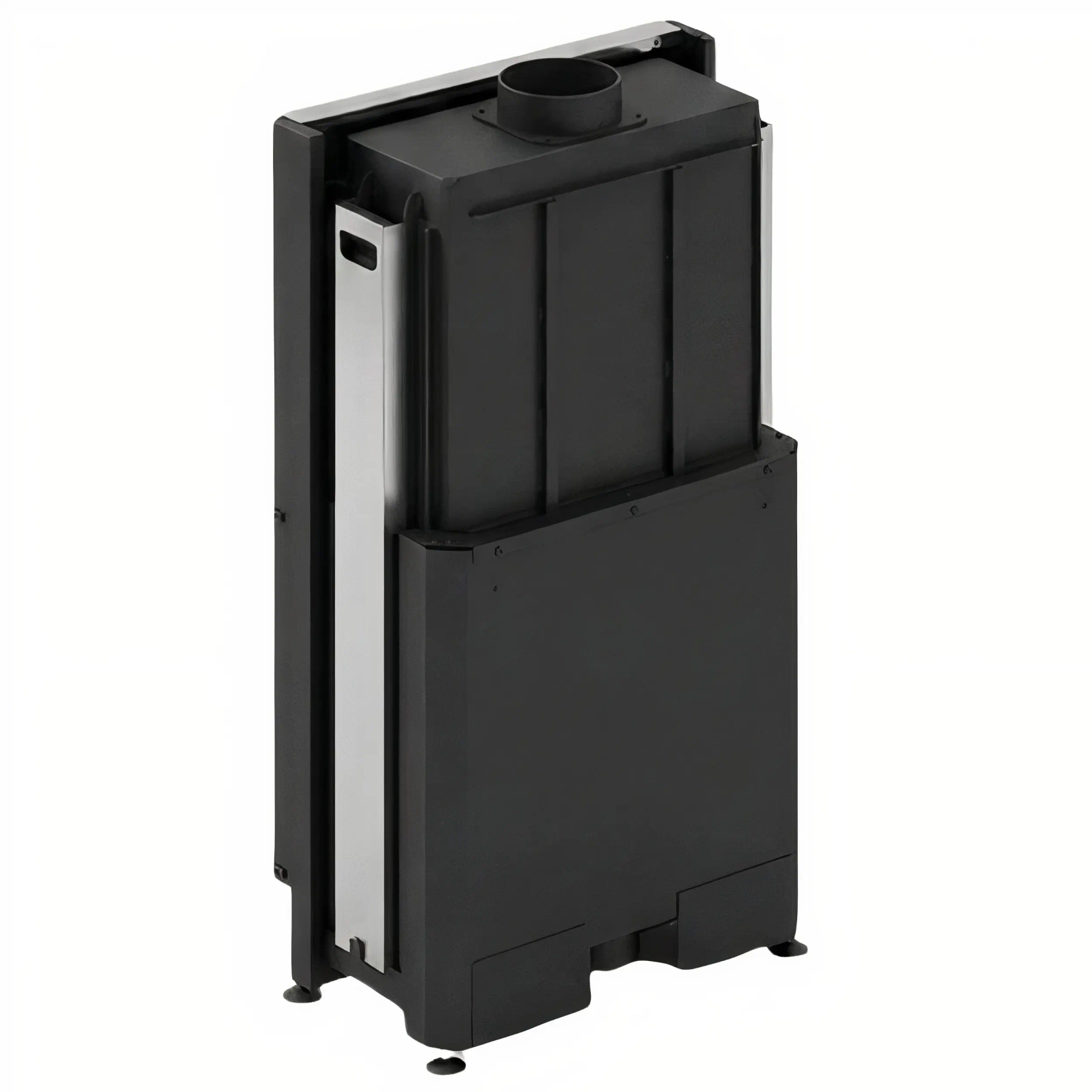 Wkłady Volcano mają nowoczesną, dwupłaszczową konstrukcję stalowo‑szamotową, która jest sprawdzonym rozwiązaniem gwarantującym długą trwałość i bezawaryjną pracę przez wiele lat. Czopuch jest trwale i solidnie zespawany z korpusem metodą spawania w osłonie gazu szlachetnego, bez uszczelek i śrub, co zapewnia szczelność i bezpieczeństwo w eksploatacji. Elementy konstrukcyjne są wycinane laserowo i obrabiane na maszynach CNC, co gwarantuje wysoką precyzję wykonania i jakość typową dla produktów klasy premium.